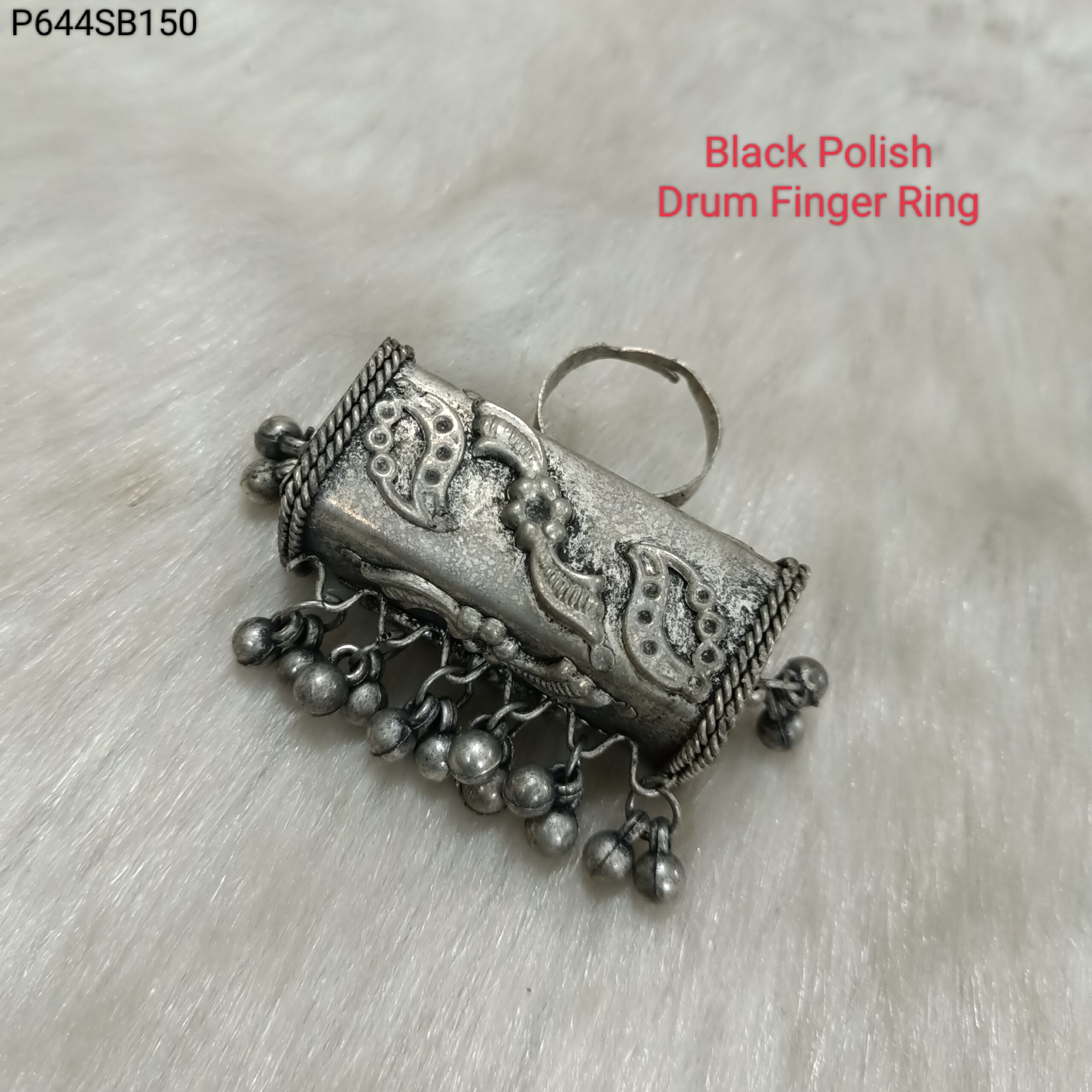 Black Polish Drum Finger Ring