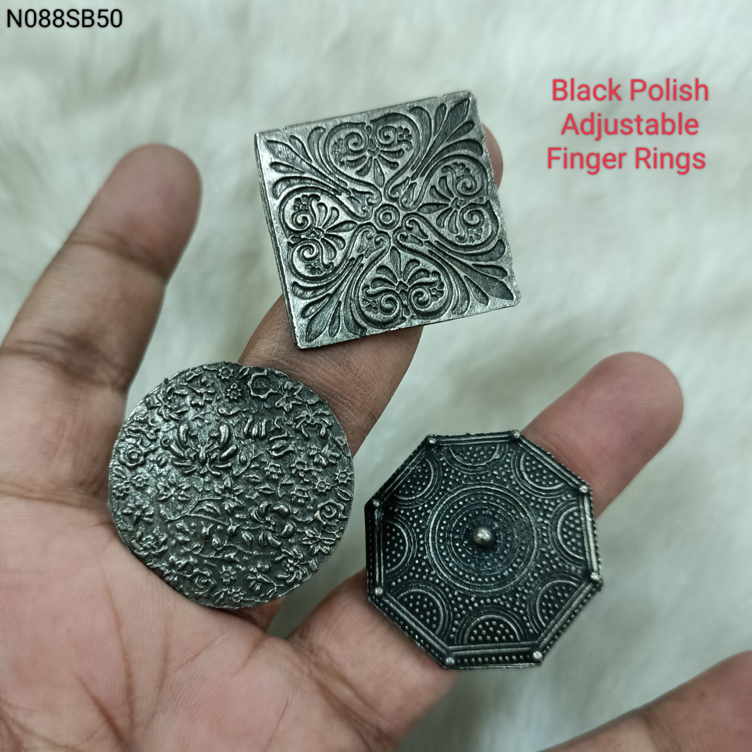 Black Polish Adjustable Finger Ring