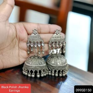 Black Polish Jhumka Earrings