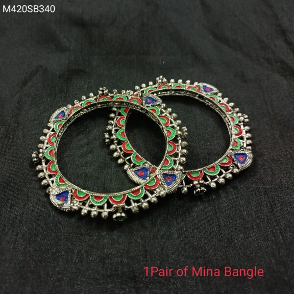 Adorn your wrists with a pair of stunning Mina bangles, a symbol of timeless elegance and cultural heritage. These intricately crafted bangles feature vibrant colors and intricate designs, adding a touch of tradition and sophistication to any outfit. Perfect for special occasions or everyday wear, they effortlessly elevate your style with their unique charm and beauty.