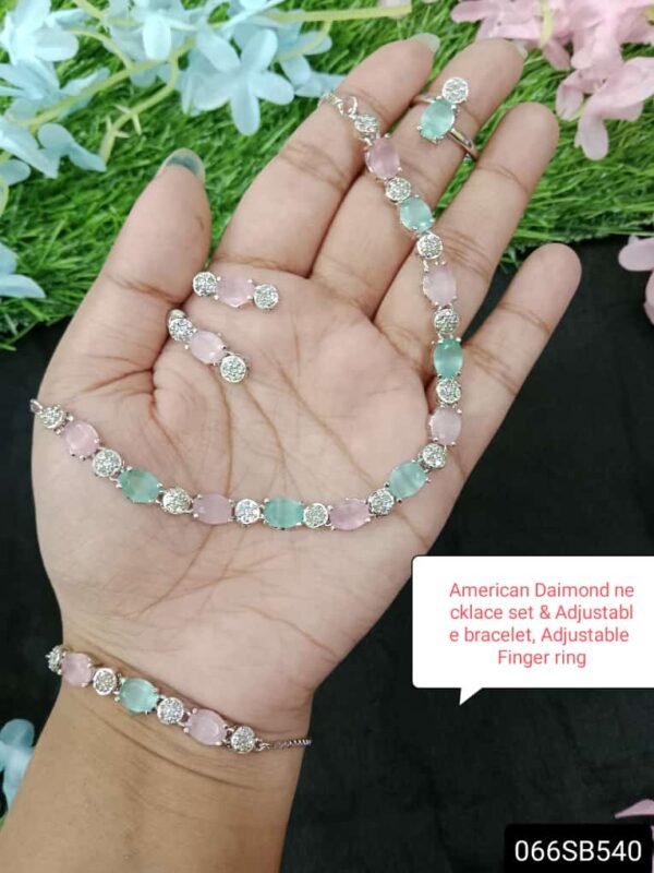 American Diamond Adjustable Bracelet & Adjustable Finger Ring & Earrings Set