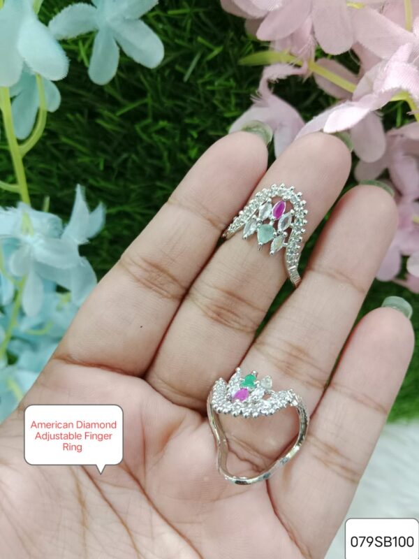 Add a touch of glamour to any outfit with this stunning adjustable finger ring. Featuring sparkling American diamonds set in a sleek rhodium-plated band, this ring combines timeless elegance with modern versatility. Its adjustable design ensures a perfect fit for any finger. Ideal for adding a bit of sparkle to your everyday look or for special occasions. Embrace sophisticated style with this dazzling accessory.