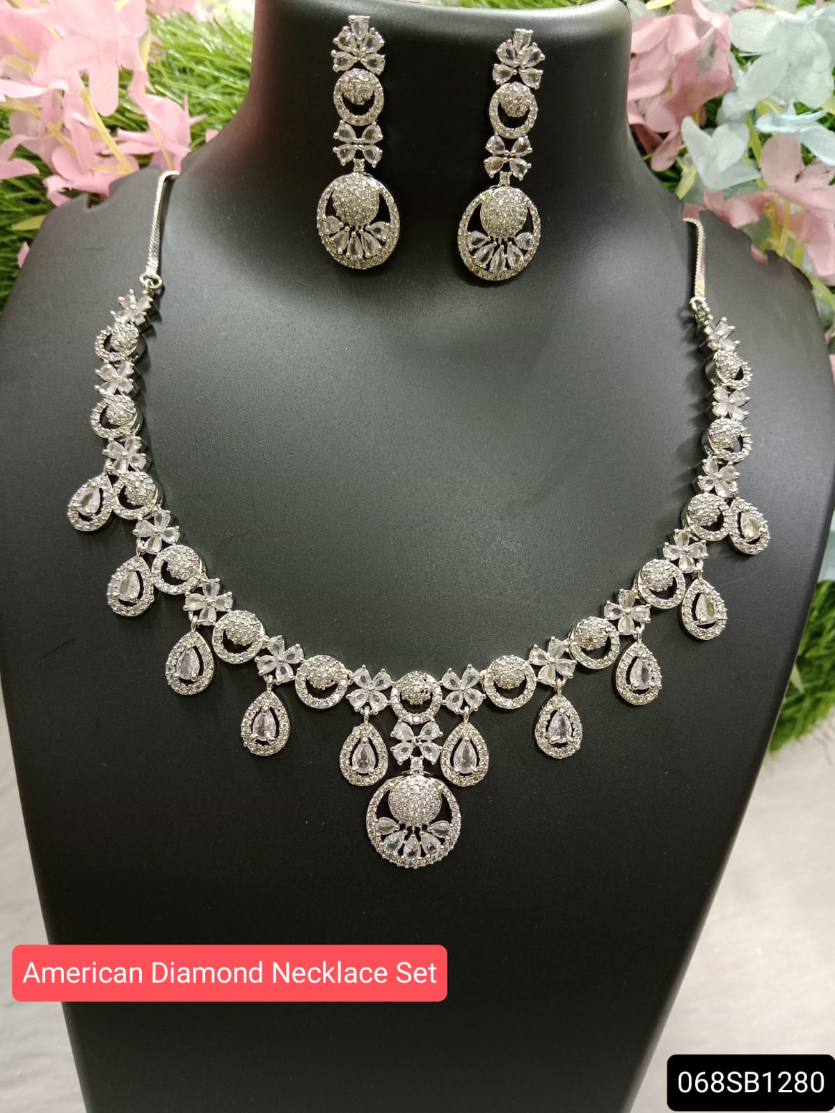 American Diamond Rhodium Plated Necklace Set