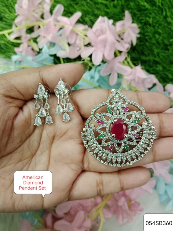 American Diamond Rhodium Plated Pendent Set
