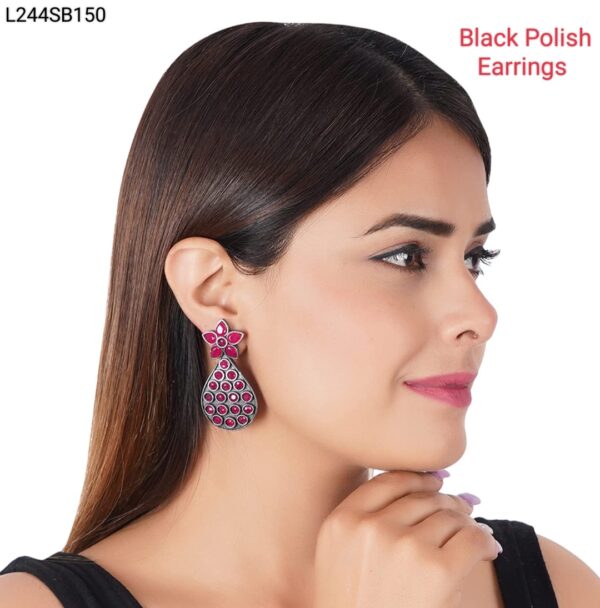The Black Polish Earrings exude contemporary elegance with their sleek design and polished finish. Crafted to perfection, these earrings boast a chic black hue that adds a touch of sophistication to any ensemble. Versatile enough for both casual and formal occasions, they effortlessly elevate your look with their understated charm. Add a dash of modern allure to your jewelry collection with these exquisite black polish earrings.