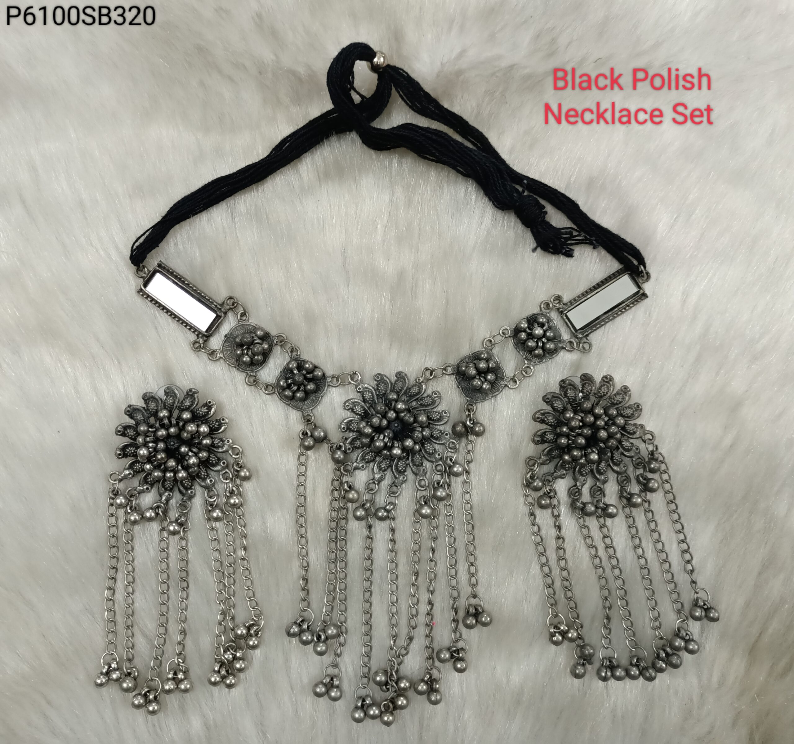 The Black Polish Necklace Set exudes timeless sophistication with its sleek design and polished finish. Crafted to elevate any ensemble, this set includes a necklace and matching earrings, all featuring a striking black polish that adds a touch of elegance to your look. Versatile enough for both casual and formal occasions, this set effortlessly enhances your style with its understated charm. Elevate your jewelry collection with this exquisite black polish necklace set, perfect for adding a touch of sophistication to any outfit.