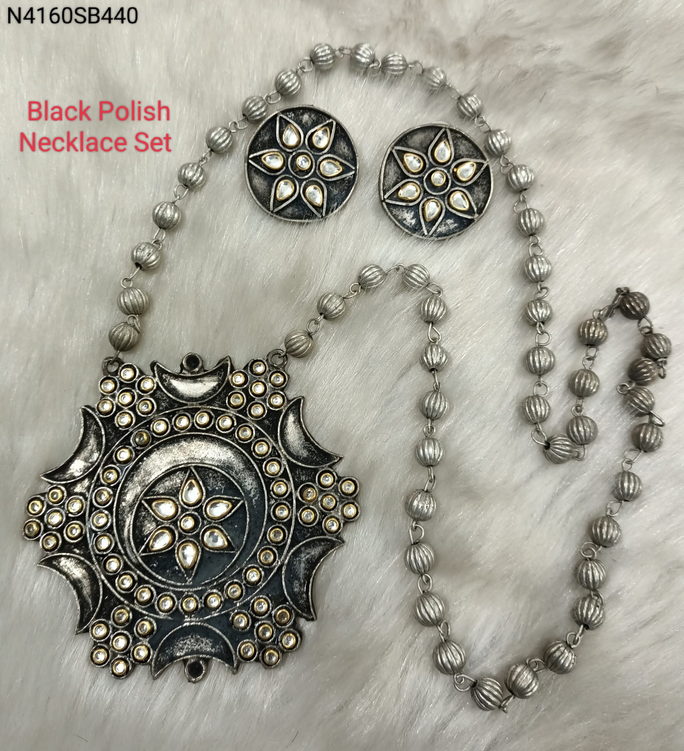 The Black Polish Necklace Set radiates contemporary elegance with its sleek design and polished finish. This set features a chic black necklace adorned with intricate detailing, accompanied by matching earrings for a coordinated look that effortlessly enhances any outfit. Perfect for adding a touch of sophistication to both casual and formal ensembles, this set is a versatile addition to your jewelry collection, destined to become a staple piece.