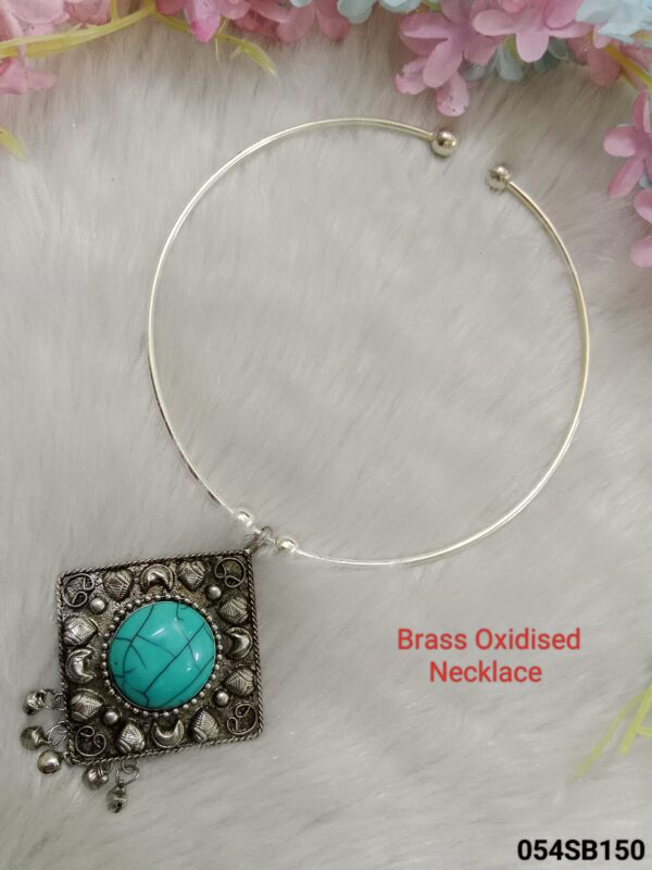 An oxidized brass necklace typically boasts a rich, antique-inspired appearance. The oxidization process darkens the brass, creating a distinct patina that adds depth and character to the jewelry. These necklaces often feature intricate designs, such as filigree work or ethnic motifs, which are highlighted by the darkened finish. The antique look of oxidized brass necklaces adds a touch of vintage charm to any outfit, making them versatile pieces suitable for both casual and formal occasions.