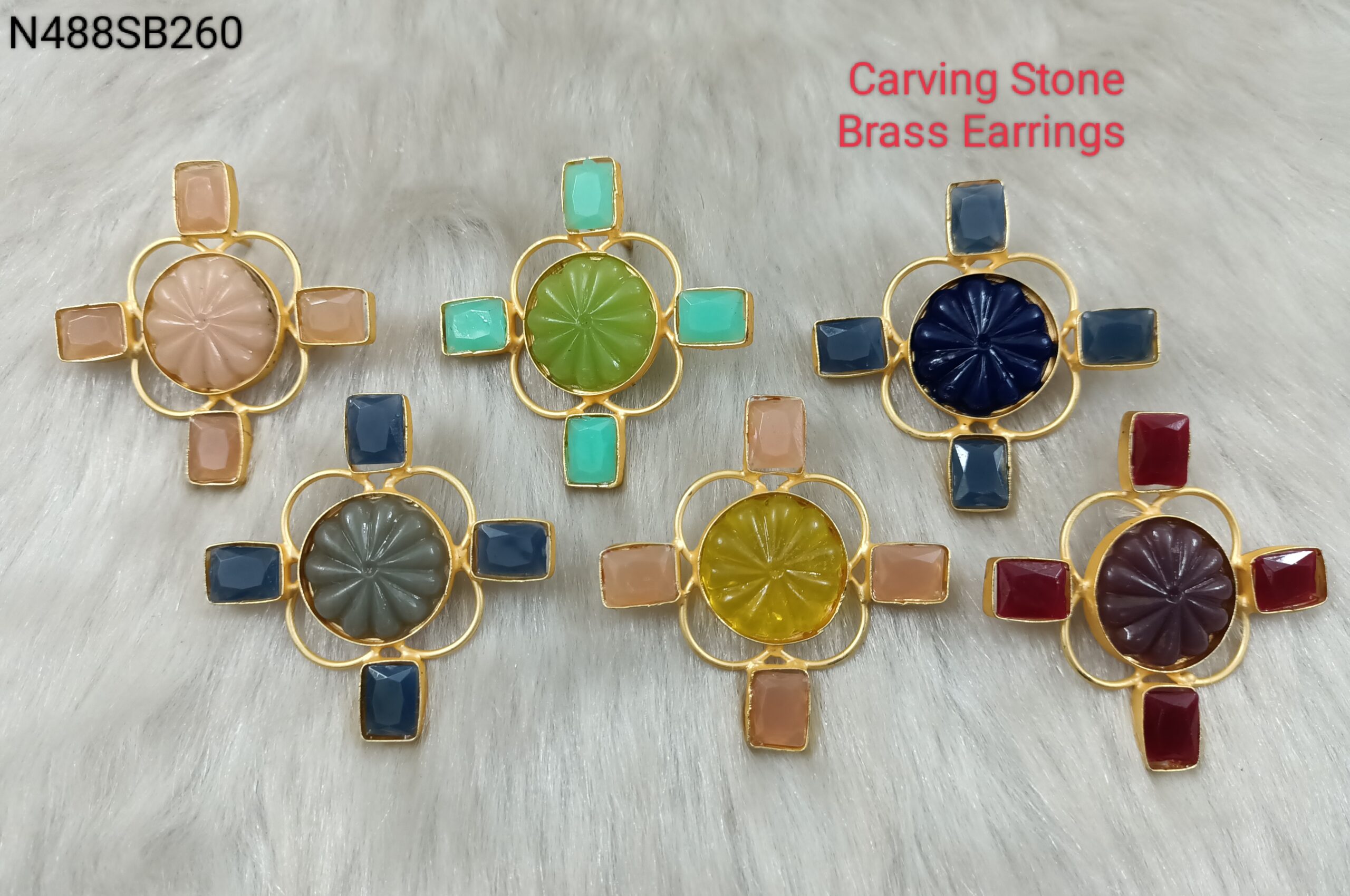 Carving stone brass earrings are a unique and eye-catching accessory that blends the rustic appeal of brass with the intricate beauty of carved stones. These earrings typically feature stones that have been skillfully carved with detailed designs or patterns, adding a touch of artisanal craftsmanship to the piece. Set in brass, the earrings offer a warm and earthy tone that complements the natural textures of the carved stones. The combination of brass and carving stone creates a striking contrast, resulting in earrings that are both bold and elegant. Whether worn as a statement piece or to add a touch of artistic flair to an outfit, carving stone brass earrings are sure to make a memorable impression.