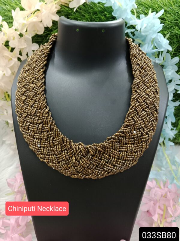 The Chinni Puti necklace is a radiant celebration of traditional Indian artistry and contemporary allure. Adorned with intricate motifs and vibrant colors, this necklace beautifully blends cultural heritage with modern sophistication. Crafted with meticulous attention to detail, each piece tells a story of timeless elegance and cultural richness. Whether worn for festive occasions or to add a touch of ethnic charm to everyday attire, the Chinni Puti necklace is sure to captivate with its unique fusion of tradition and style.