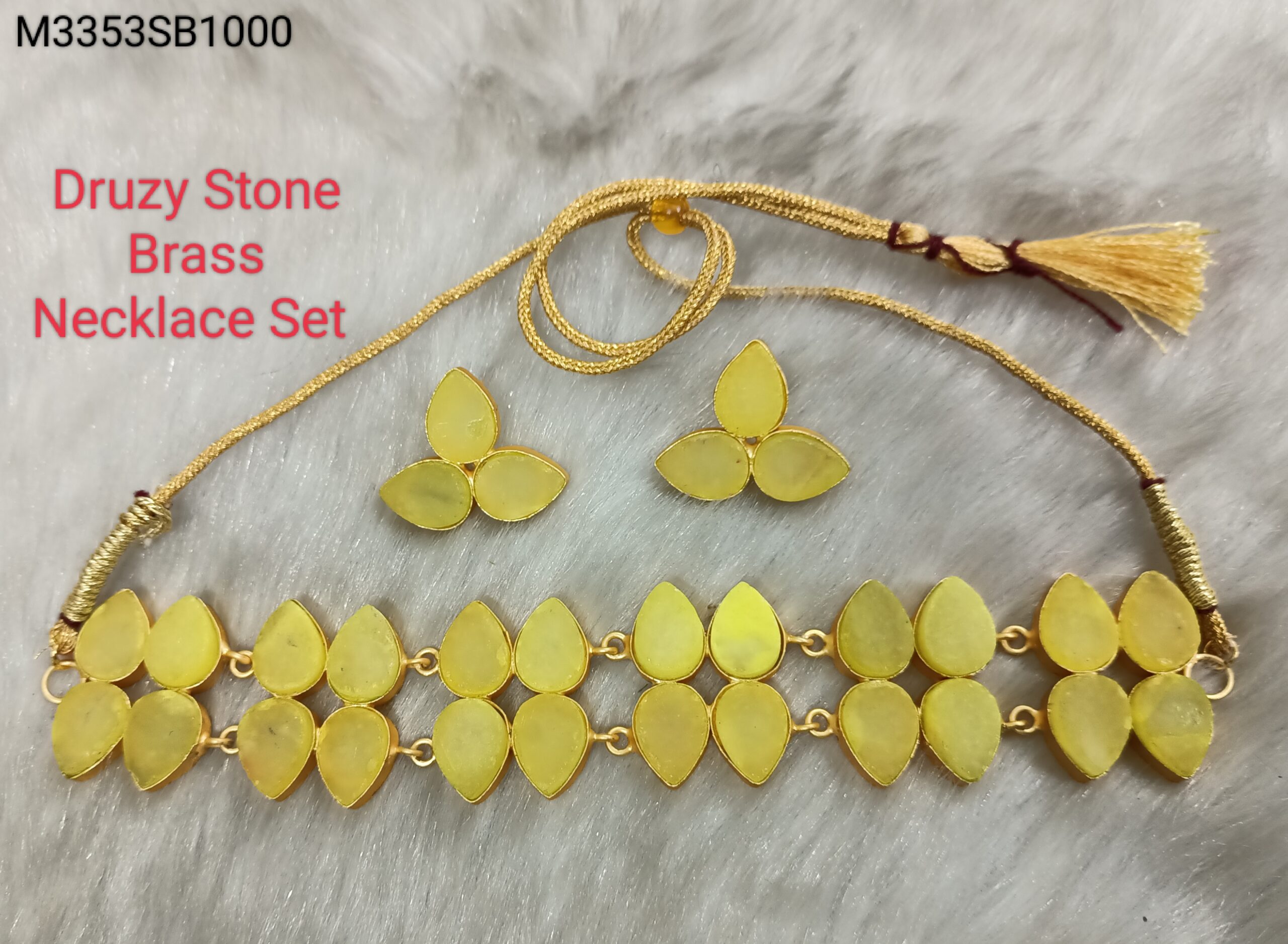 Druzy Stone Brass Necklace Set