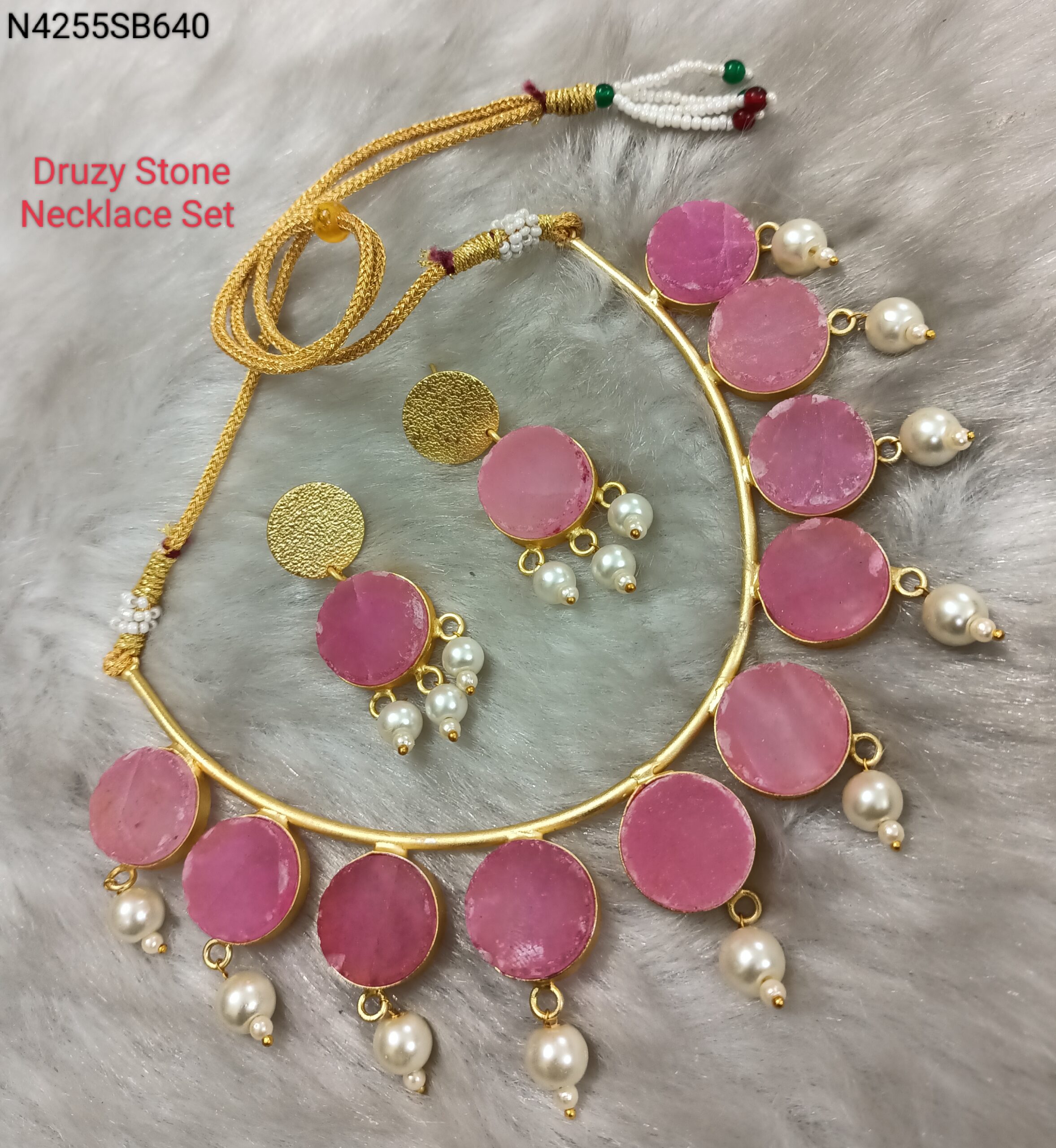 The Druzy Stone Necklace Set is a captivating ensemble that seamlessly blends natural beauty with refined elegance. This set features a necklace adorned with mesmerizing druzy stones, each shimmering with its unique crystalline patterns, paired with matching earrings to complete the look. Perfect for those who appreciate the allure of natural gemstones, this set adds a touch of glamour and sophistication to any outfit. Elevate your style with this exquisite druzy stone necklace set, destined to become a cherished addition to your jewelry collection.