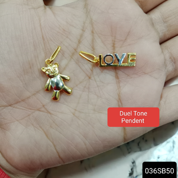 A dual-tone pendant is a piece of jewelry, typically worn on a necklace chain, that features two different metal tones or finishes within its design. Here’s a description of a dual-tone pendant: