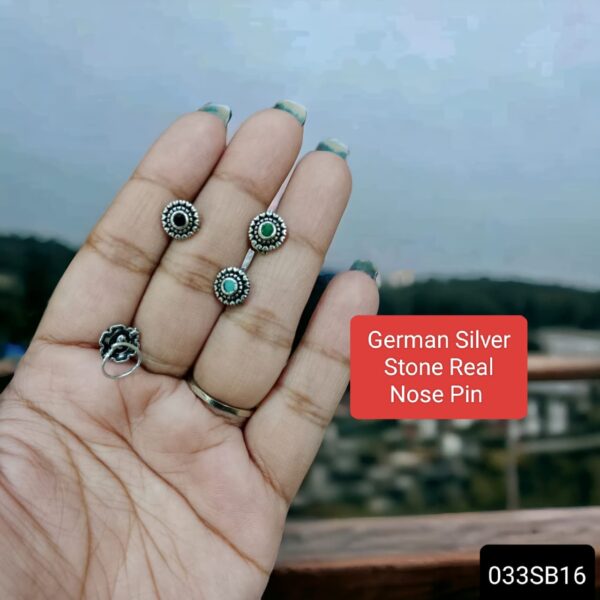 Discover understated elegance with our German silver nose pin featuring a genuine stone. Crafted with meticulous attention to detail, this nose pin combines the rustic charm of German silver with the natural beauty of real stone. The minimalist design adds a touch of sophistication to any look, making it a versatile accessory for everyday wear or special occasions. Elevate your style with this timeless piece that effortlessly captures attention.