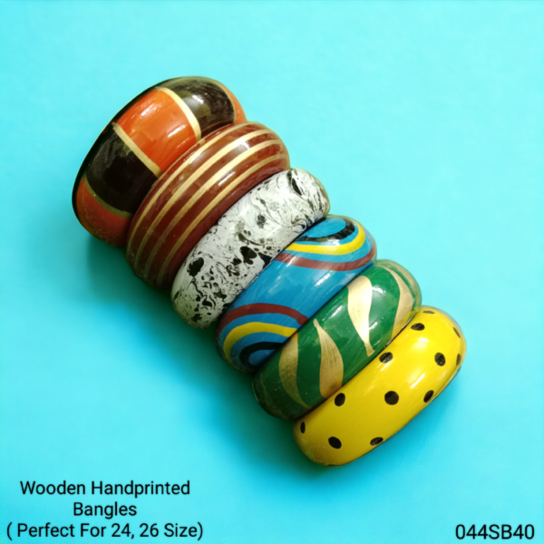 Elevate your accessory collection with our Hand-Printed Wooden Bangles, a charming blend of artisan craftsmanship and natural beauty. Each bangle is meticulously crafted from high-quality wood and adorned with intricate hand-printed designs, adding a touch of unique style to your ensemble. Perfect for adding a bohemian flair to your look, these bangles are lightweight and comfortable to wear all day. Whether worn individually or stacked for a bold statement, these hand-printed wooden bangles are sure to become a cherished addition to your jewelry collection.