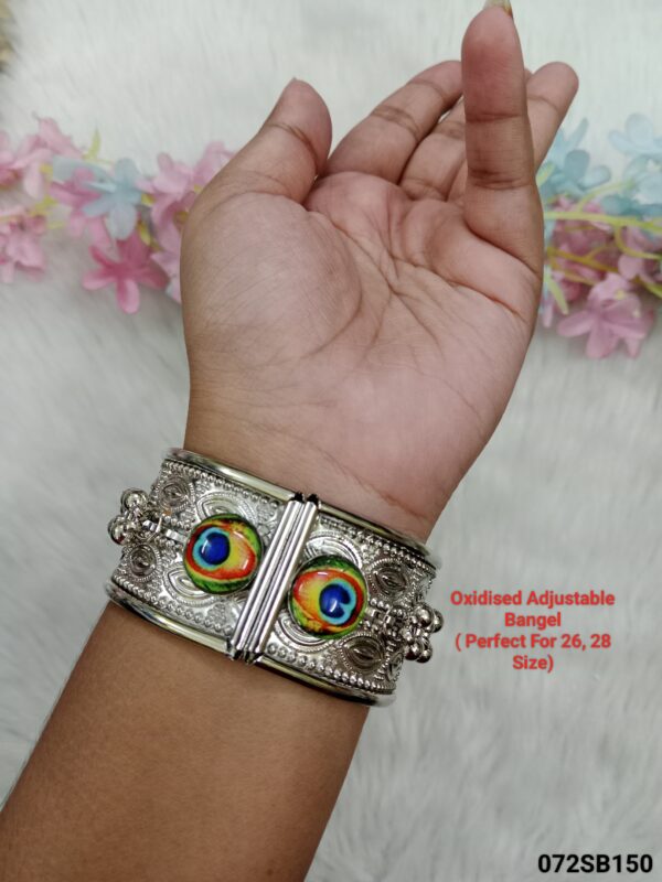Elevate your accessory game with our Oxidized Adjustable Bangle. Crafted with meticulous attention to detail, this versatile piece features a stunning oxidized finish that exudes vintage charm. Its adjustable design ensures a comfortable fit for all wrist sizes, while its intricate patterns add a touch of elegance to any ensemble. Perfect for both casual and formal occasions, this bangle is sure to become a staple in your jewelry collection.