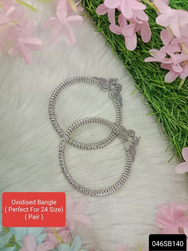 Elevate your style with our exquisite oxidized bangle pair. Crafted with intricate patterns and a timeless finish, each piece radiates vintage charm and modern elegance. Perfect for adding a touch of sophistication to any ensemble, these bangles are a must-have accessory for every jewelry collection.