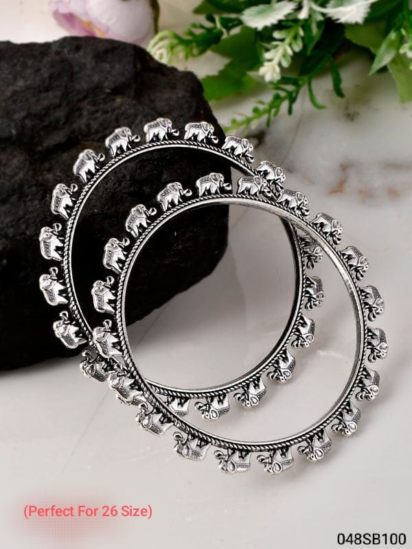 Elevate your style with our exquisite oxidized bangle pair. Crafted with intricate patterns and a timeless finish, each piece radiates vintage charm and modern elegance. Perfect for adding a touch of sophistication to any ensemble, these bangles are a must-have accessory for every jewelry collection.