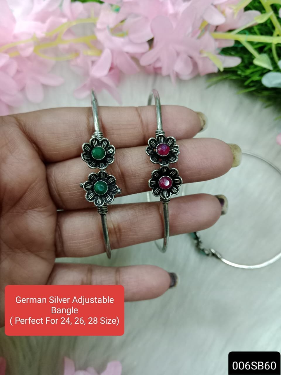The German silver adjustable bangle combines versatility with style. Crafted from durable German silver, this bangle features an adjustable design, allowing for a comfortable and customizable fit on various wrist sizes. The silver hue adds a touch of elegance, while the sleek and minimalist design makes it suitable for both casual and formal occasions. Whether worn alone as a statement piece or stacked with other bangles for a layered look, the German silver adjustable bangle is a versatile accessory that adds a touch of sophistication to any ensemble.