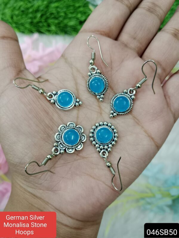 Experience the fusion of elegance and charm with our German Silver Monalisa Stone Hoops. Crafted to perfection, these hoops feature the timeless allure of German silver adorned with captivating Monalisa stones, adding a touch of sparkle and sophistication to your look. Elevate your style with these versatile earrings, ideal for both casual outings and special occasions.