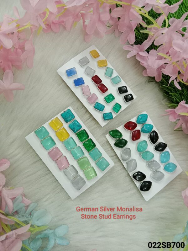 Experience elegance in its purest form with our German Silver Monalisa Stone Stud Earrings. Crafted with precision and adorned with captivating Monalisa stones, these earrings exude timeless charm and sophistication. Available in various shapes and sizes, each pair offers versatility and style, perfect for adding a touch of glamour to any ensemble. Elevate your look with these exquisite studs, designed to make a statement with every wear.