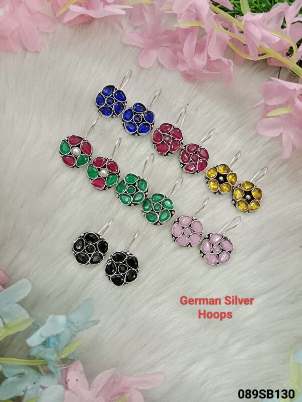Indulge in elegance with our German Silver Monalisa Hoops. Crafted with meticulous attention to detail, these hoops feature the timeless allure of German silver adorned with captivating Monalisa stones. Their versatile design effortlessly transitions from day to night, adding a touch of sparkle and sophistication to any ensemble. Elevate your style with these stunning hoops, perfect for both casual outings and special occasions.