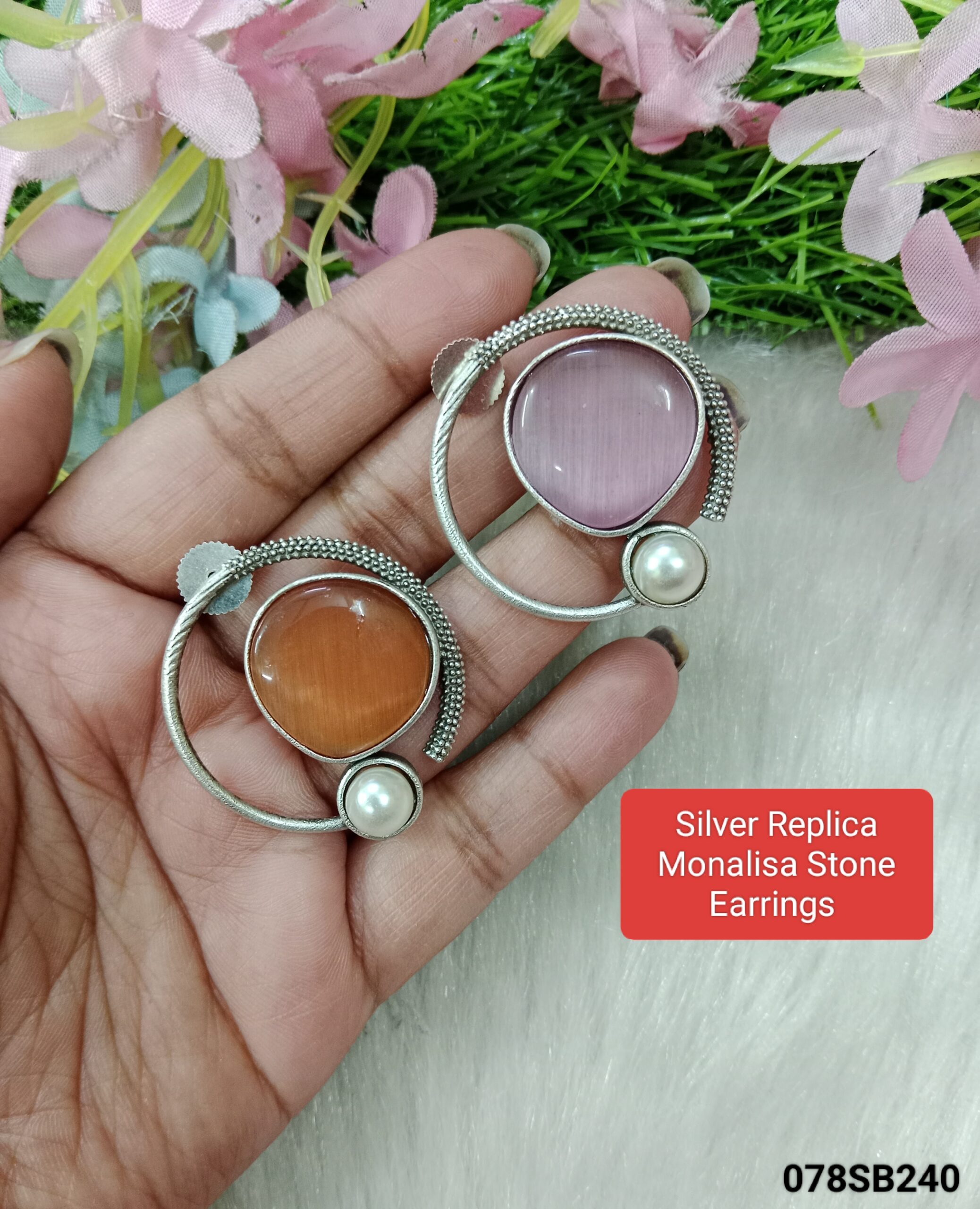 Indulge in elegance with our Silver Replica Monalisa Stone Earrings. Each pair showcases the allure of Monalisa stones set in finely crafted silver, exuding timeless sophistication and charm. Elevate your ensemble with these captivating earrings, perfect for adding a touch of luxury to any occasion.