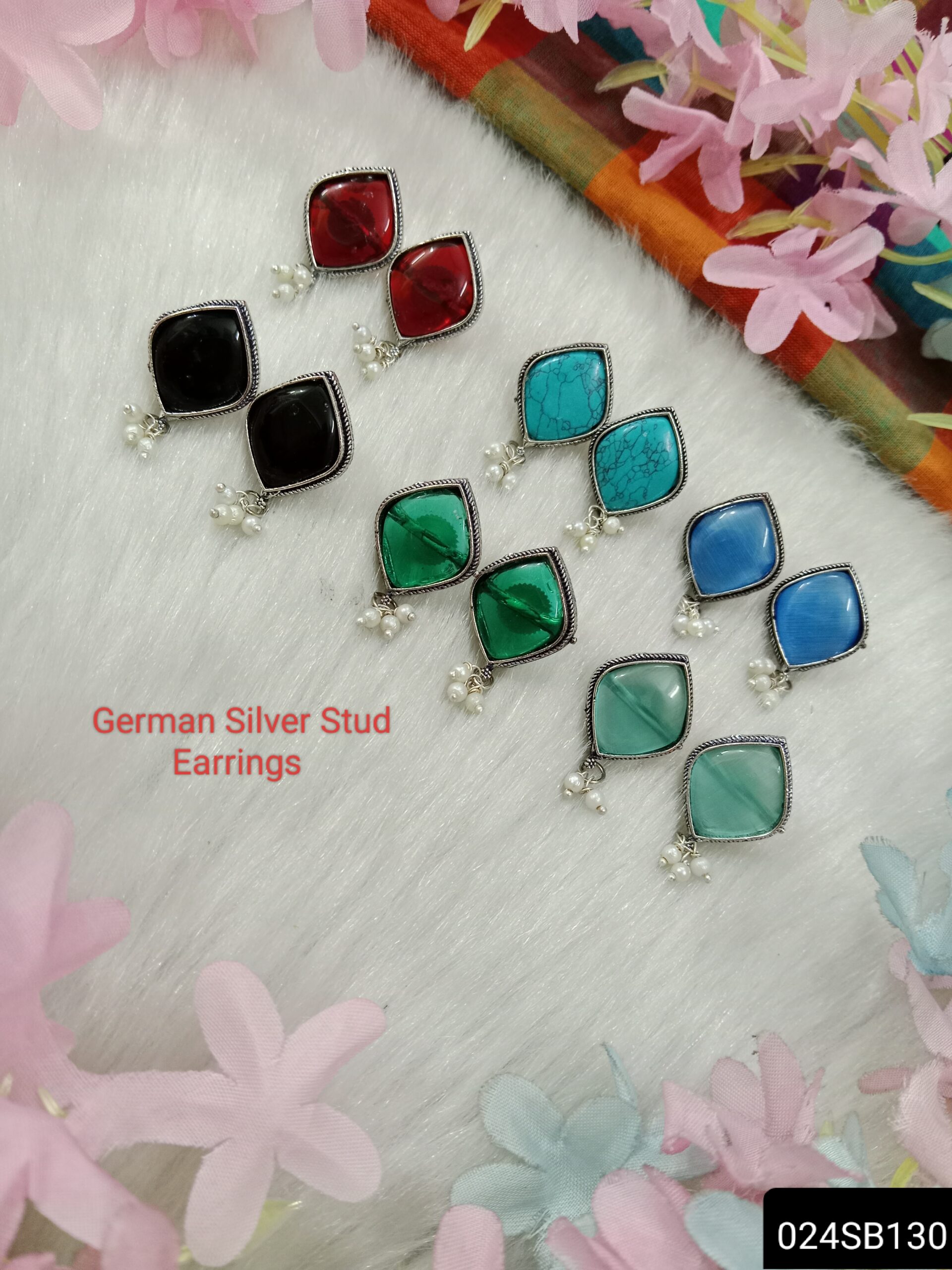 German silver stud earrings are classic and versatile accessories crafted from German silver, an alloy composed primarily of copper, nickel, and zinc. These earrings feature a simple yet elegant design, typically consisting of a small decorative element or gemstone secured to a post that rests comfortably on the earlobe. The silver hue of the alloy complements a wide range of outfits and styles, making them suitable for both casual and formal occasions. Known for their durability and lustrous appearance, German silver stud earrings add a touch of timeless sophistication to any ensemble, making them a staple accessory in any jewelry collection.
