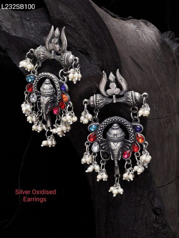 Silver oxidized earrings are elegant accessories crafted from silver that has been treated with an oxidizing agent to achieve a darkened, antique finish. These earrings typically feature intricate designs or patterns that are highlighted by the oxidized background, creating a striking contrast and adding depth to the piece. The oxidized finish gives the earrings a vintage-inspired look, adding a touch of old-world charm to any outfit. Whether adorned with filigree details, geometric shapes, or nature-inspired motifs, silver oxidized earrings are versatile accessories that can complement both casual and formal attire. With their timeless appeal and artisanal craftsmanship, these earrings are sure to add a touch of sophistication to any ensemble.