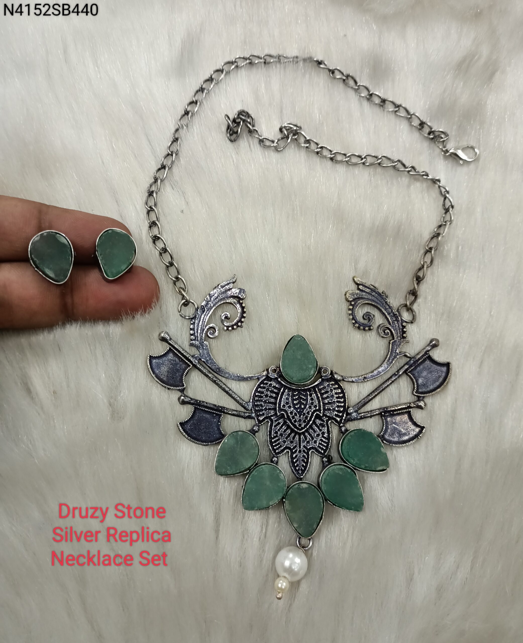Silver Replica Druzy Stone Necklace Set