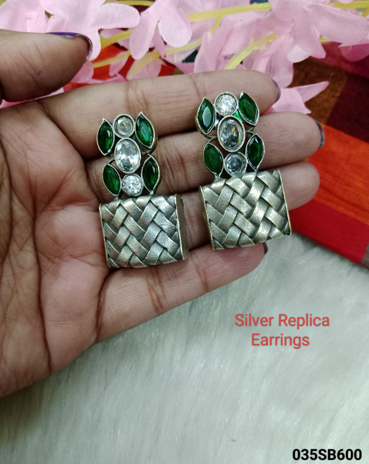 Silver Replica Earrings offer classic elegance with a modern twist. Mimicking the appearance of sterling silver, these earrings feature intricate details and a polished finish. Whether adorned with timeless designs or contemporary motifs, they add a touch of sophistication to any outfit. Versatile for both casual and formal occasions, these earrings are a stylish accessory that complements any look.
