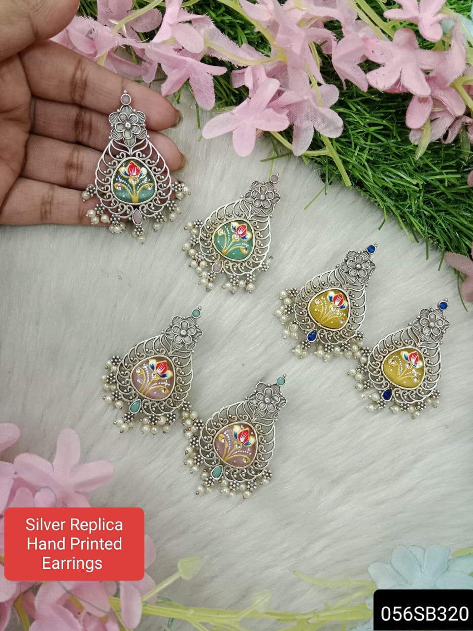Elevate your style with our unique silver replica hand-printed earrings. Crafted with meticulous attention to detail, these earrings boast intricate hand-printed designs that mimic the beauty of traditional silver craftsmanship. The lightweight and versatile design make them perfect for adding a touch of elegance to any outfit. With their timeless appeal and exquisite detailing, these earrings are sure to become a staple in your jewelry collection.