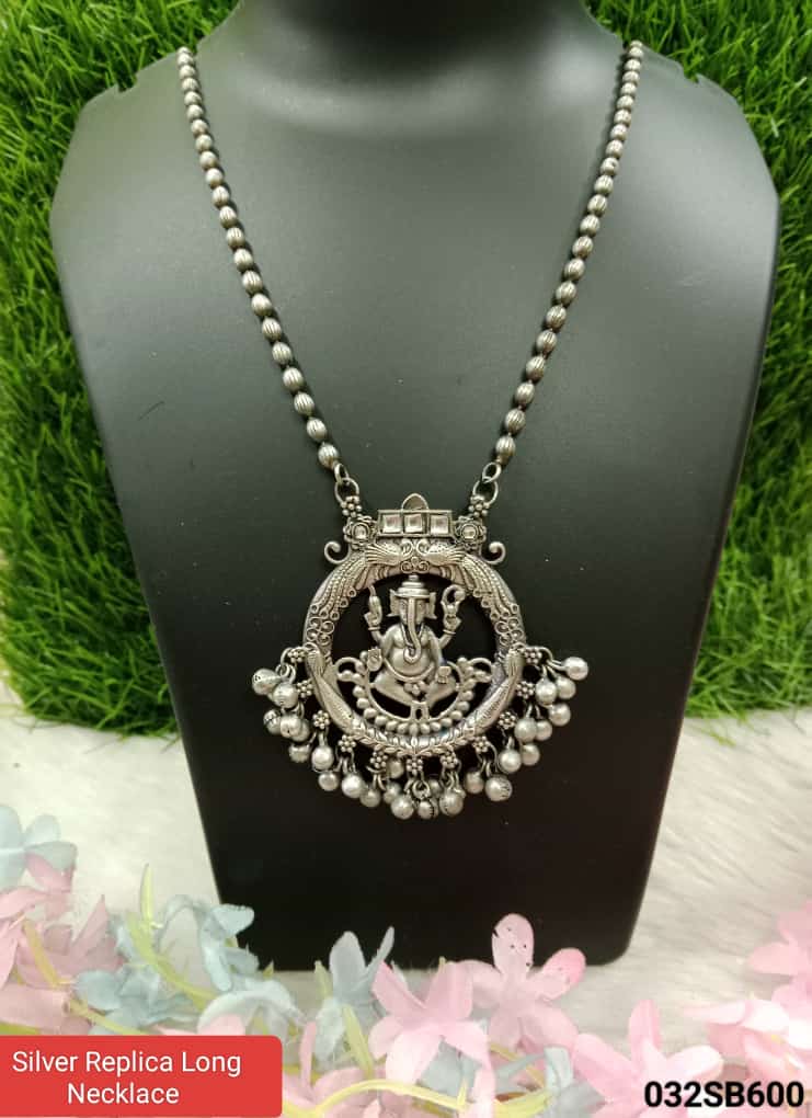A Silver Replica Long Necklace is a piece of jewelry inspired by traditional designs and crafted to resemble silver ornaments. Typically made from high-quality materials such as sterling silver or silver-plated alloys, these necklaces mimic the appearance of traditional silver jewelry while offering affordability and accessibility. The necklace often features intricate patterns, filigree work, or motifs reminiscent of cultural heritage and historical styles. Designed to be versatile, these replicas can be worn with both casual and formal attire, adding a touch of elegance and sophistication to any outfit.