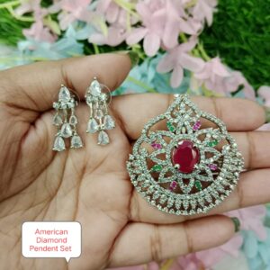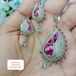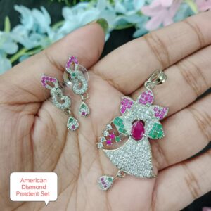 American Diamond Adjustable Bracelet & Adjustable Finger Ring & Earrings Set